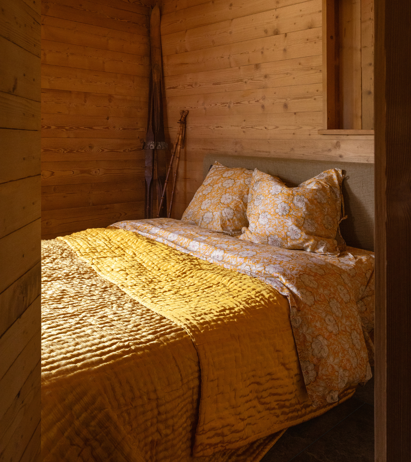 La finalité ? Sélectionner les meilleurs tissus à la source (comme la soie, le velours, la laine ou le lin) et les plus belles matières (bois massif, grès, céramique...) pour orner toutes les pièces de la maison. Rideaux, plaids et coussins s’invitent au salon, parure de lit dans la chambre, linge de table de belle facture côté cuisine et salle à manger, et bien sûr du papier peint all over !