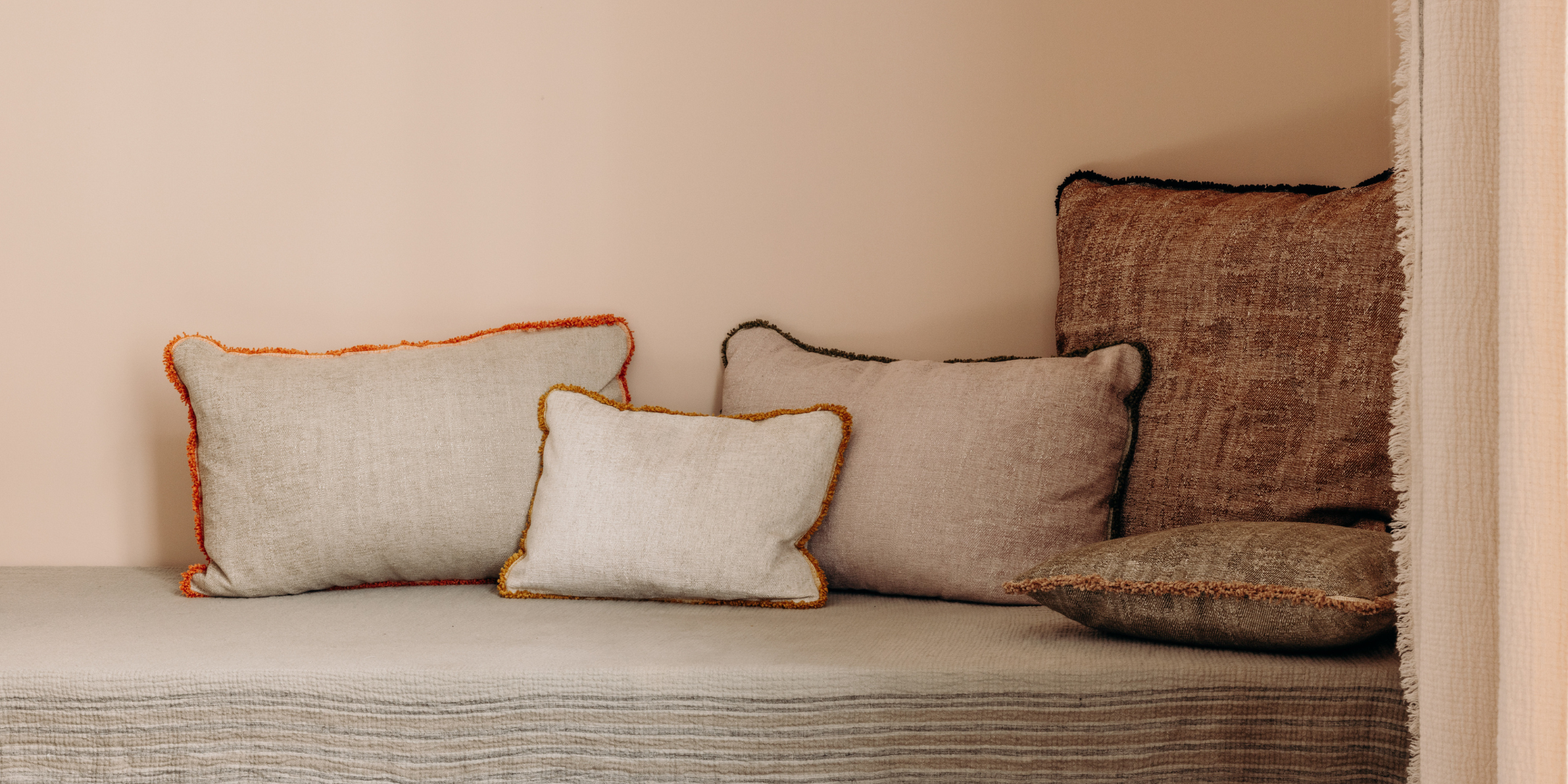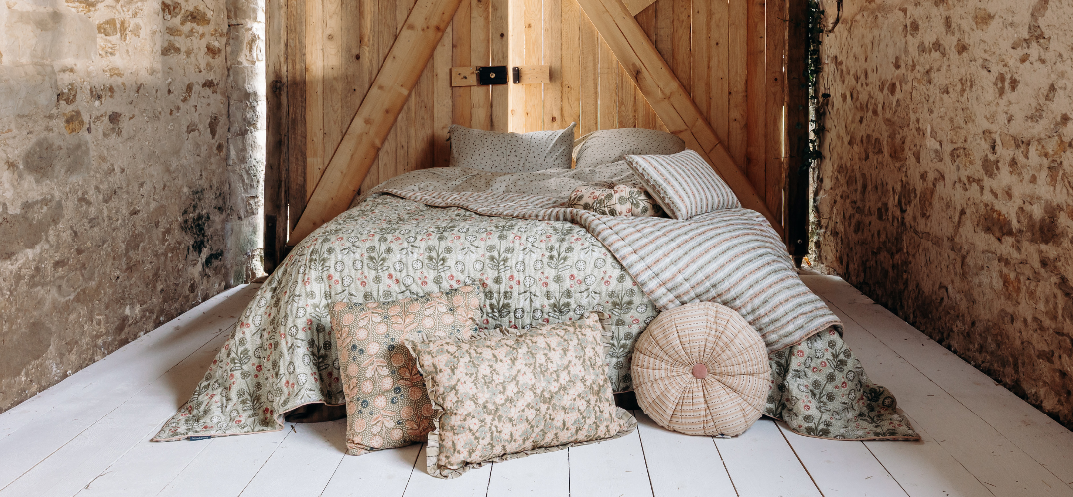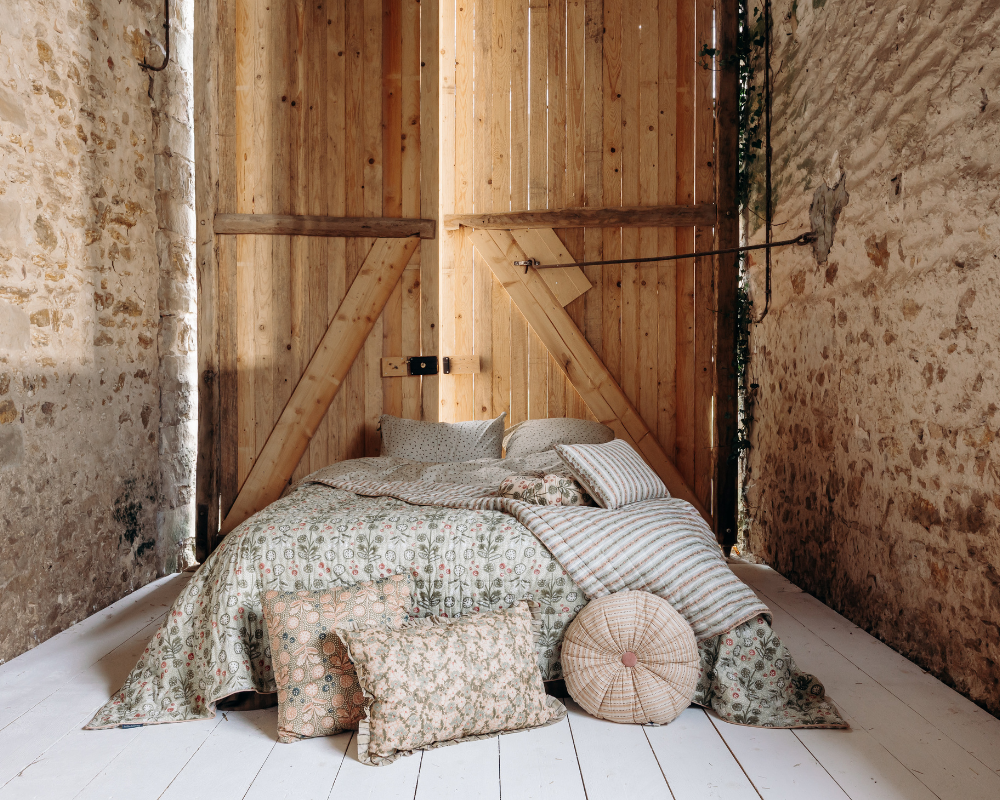 La finalité ? Sélectionner les meilleurs tissus à la source (comme la soie, le velours, la laine ou le lin) et les plus belles matières (bois massif, grès, céramique...) pour orner toutes les pièces de la maison. Rideaux, plaids et coussins s’invitent au salon, parure de lit dans la chambre, linge de table de belle facture côté cuisine et salle à manger, et bien sûr du papier peint all over !