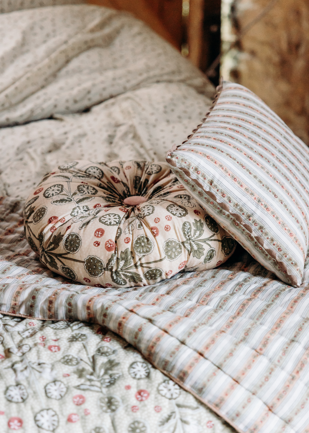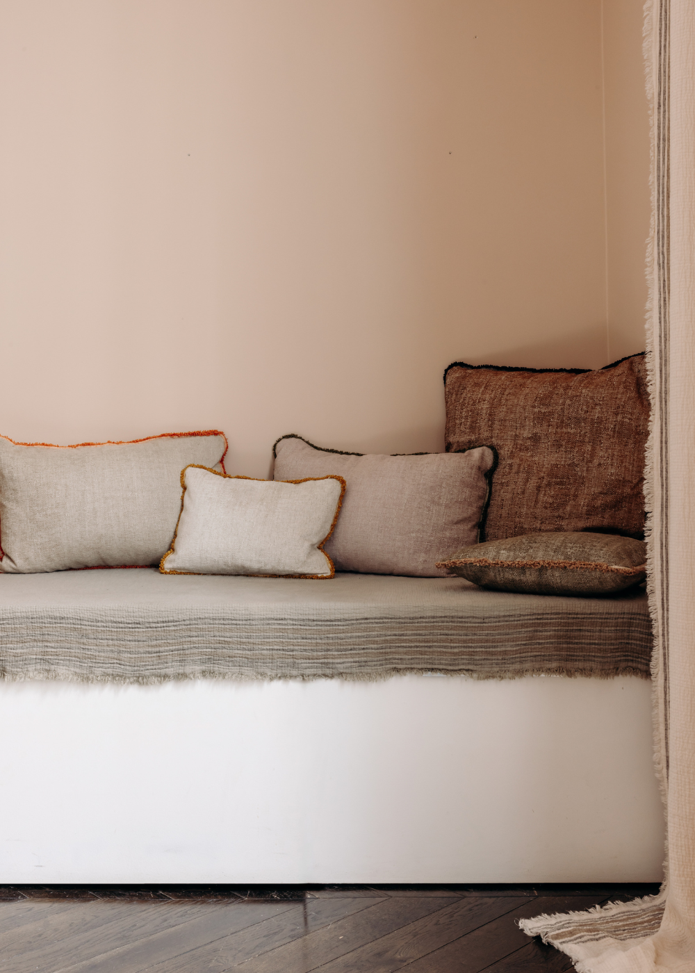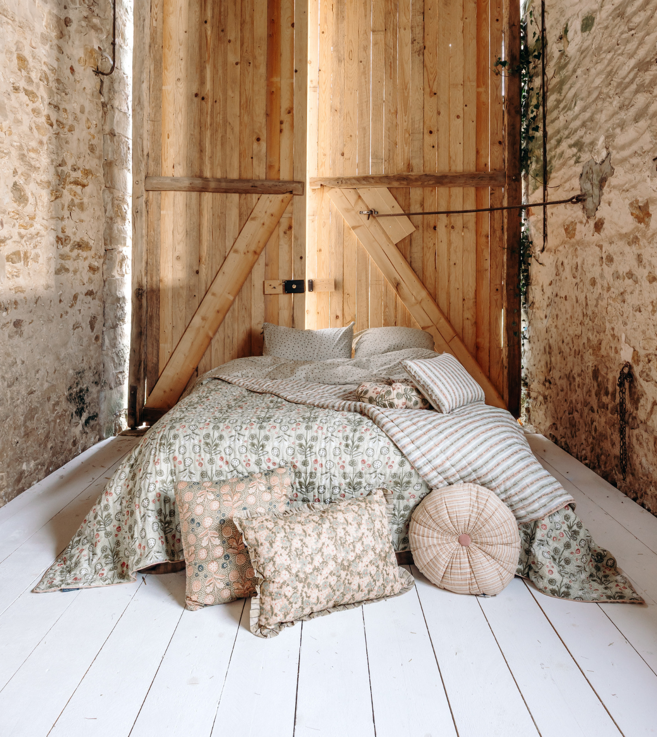 La finalité ? Sélectionner les meilleurs tissus à la source (comme la soie, le velours, la laine ou le lin) et les plus belles matières (bois massif, grès, céramique...) pour orner toutes les pièces de la maison. Rideaux, plaids et coussins s’invitent au salon, parure de lit dans la chambre, linge de table de belle facture côté cuisine et salle à manger, et bien sûr du papier peint all over !
