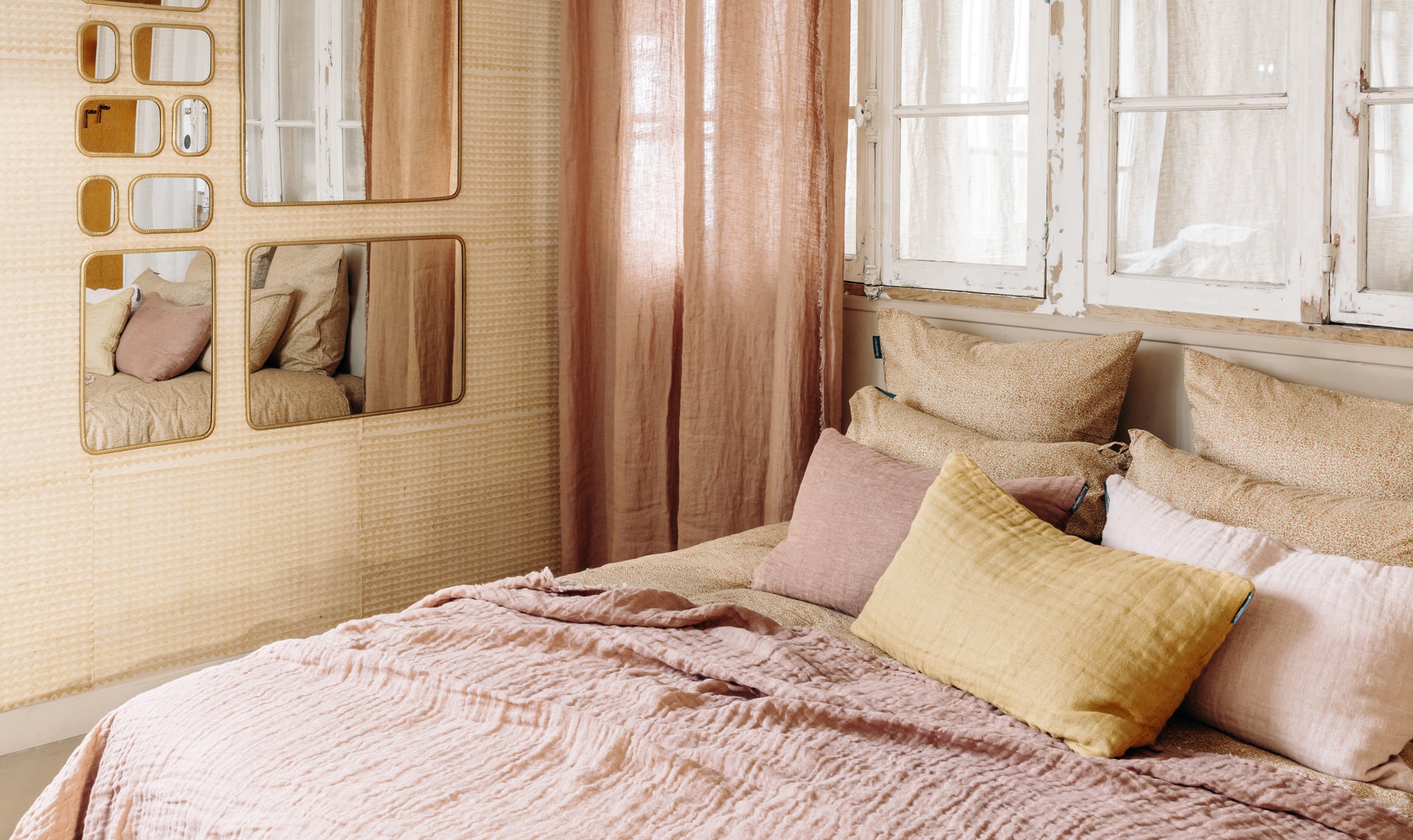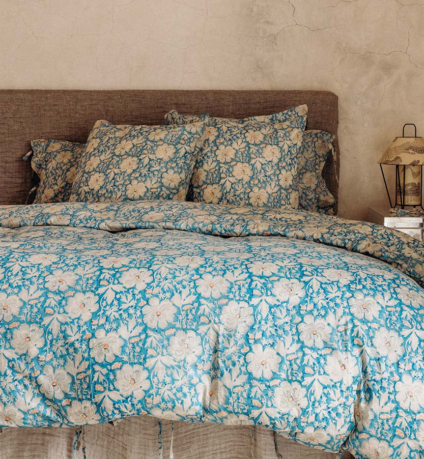 La finalité ? Sélectionner les meilleurs tissus à la source (comme la soie, le velours, la laine ou le lin) et les plus belles matières (bois massif, grès, céramique...) pour orner toutes les pièces de la maison. Rideaux, plaids et coussins s’invitent au salon, parure de lit dans la chambre, linge de table de belle facture côté cuisine et salle à manger, et bien sûr du papier peint all over !