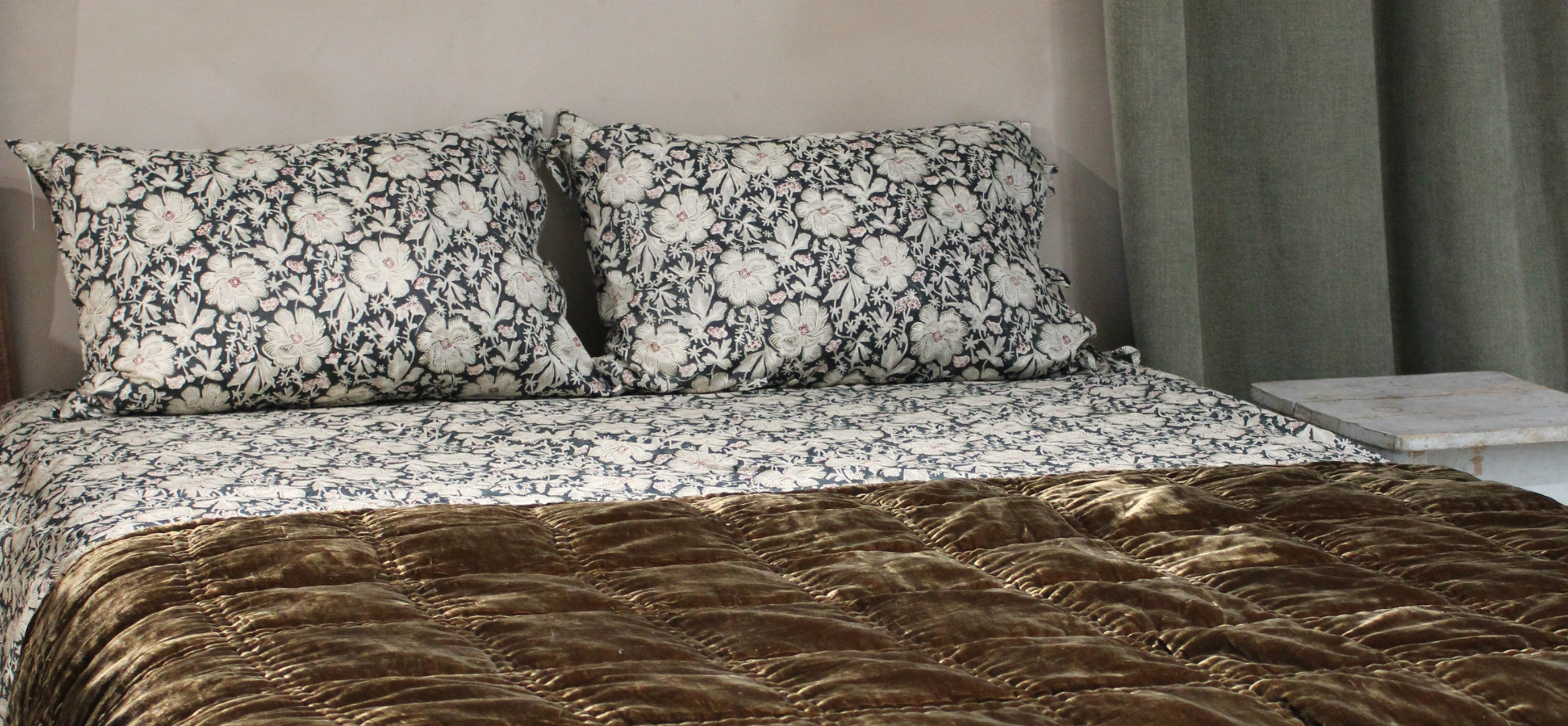 La finalité ? Sélectionner les meilleurs tissus à la source (comme la soie, le velours, la laine ou le lin) et les plus belles matières (bois massif, grès, céramique...) pour orner toutes les pièces de la maison. Rideaux, plaids et coussins s’invitent au salon, parure de lit dans la chambre, linge de table de belle facture côté cuisine et salle à manger, et bien sûr du papier peint all over !