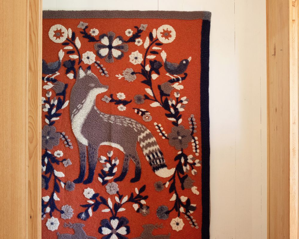 Plaid en laine bouillie. L’esprit folk version fox ! Inspiré d’Europe de l’Est, le plaid Radu impose son contraste de couleurs fortes. Ses nuances de bleu associées à un orange Sienne sont adoucies par les touches de mauve et composent une fable fantasque. Il se fait également tenture pour animer un coin perdu ou en tête de lit.