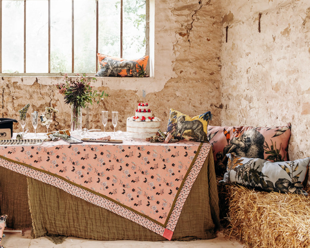 La serviette Impro se décline en différents motifs géométriques ou fleuris, pour improviser des associations uniques avec les nappes de la même gamme.