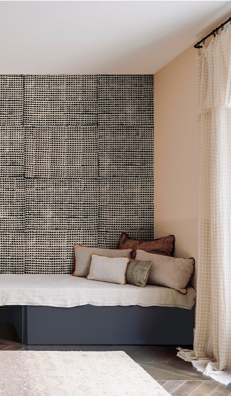 L’autre particularité de nos papiers peints ? Ils sont ultra simple à poser ! Finis les rouleaux interminables, les raccords ratés, l’équerre et le fil à plomb ! Les feuilles irrégulières se posent les unes à la suite des autres pour créer une composition vivante, qui sublime la matière. L'idée ? Conserver le bord frangé apparent ; il est souhaitable de voir le calpinage du papier (délimitation de chaque feuille), ces éléments en sont la signature si particulière. Les irrégularités prennent vie et s’harmonisent sans chichi. Même les maniaques se laissent surprendre !