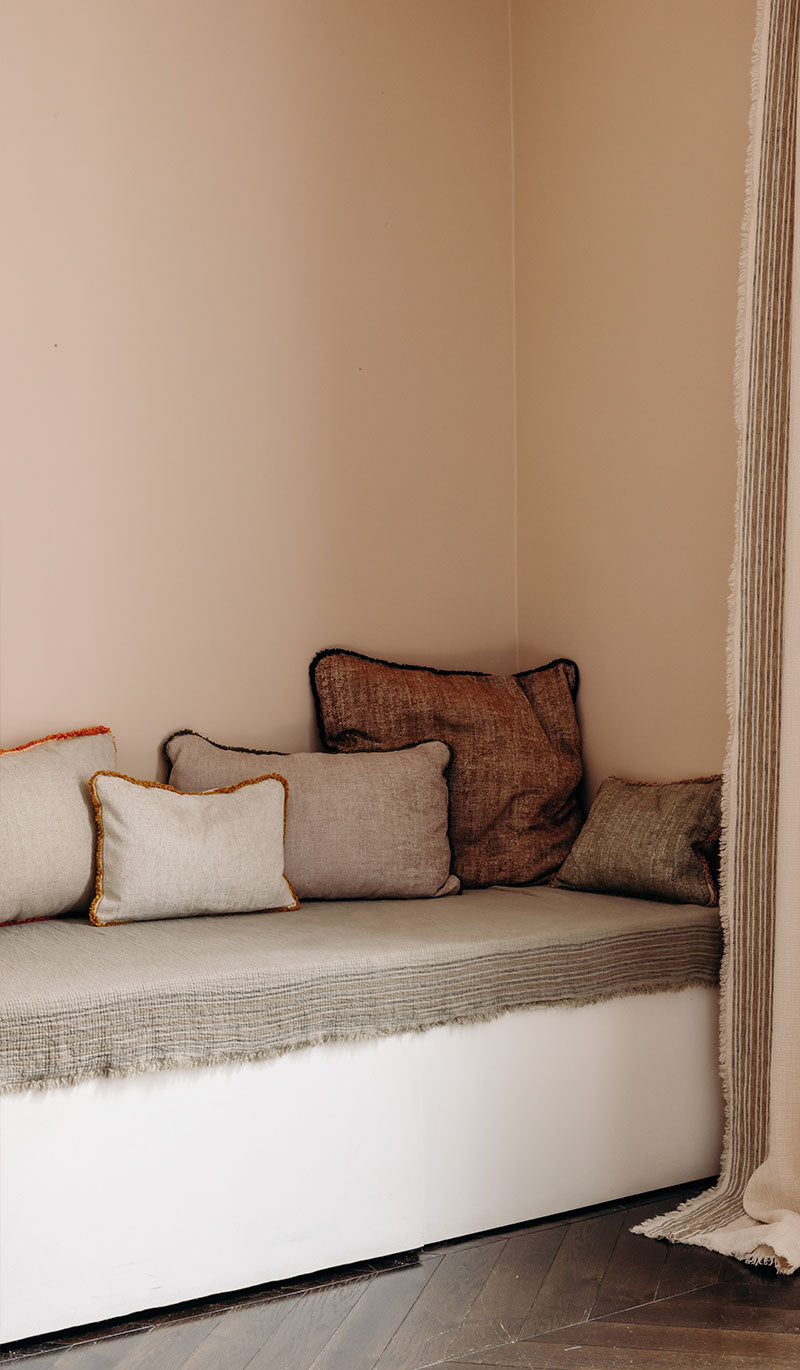Un intérieur n′est jamais complet sans le bon choix de coussins. Nous vous offrons toute une collection de coussins haut de gamme qui non seulement accentuent la beauté de votre maison, mais créent également une ambiance apaisante pour vos moments de détente. Grâce à des matières nobles comme la soie, le velours, le lin ou le coton, les coussins Le Monde Sauvage apportent une touche de raffinement à votre décoration. Leur design, fruit d′un savant mélange entre tradition et modernité, fait écho au voyage et aux rencontres hautes en couleurs qui nourrissent l′inspiration de la marque.
