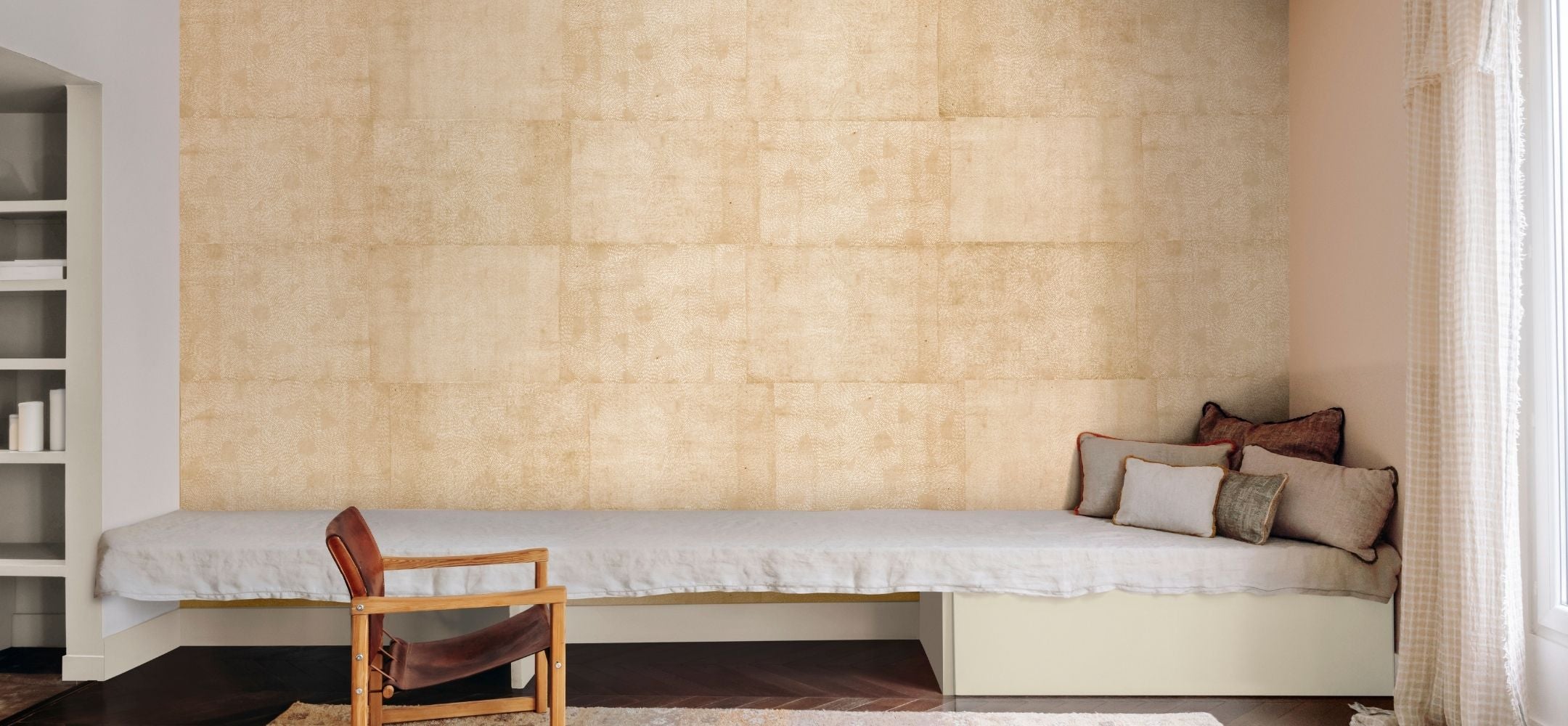 Notre papier peint est ultra simple à poser : les feuilles irrégulières se posent les unes à la suite des autres pour créer une composition vivante.