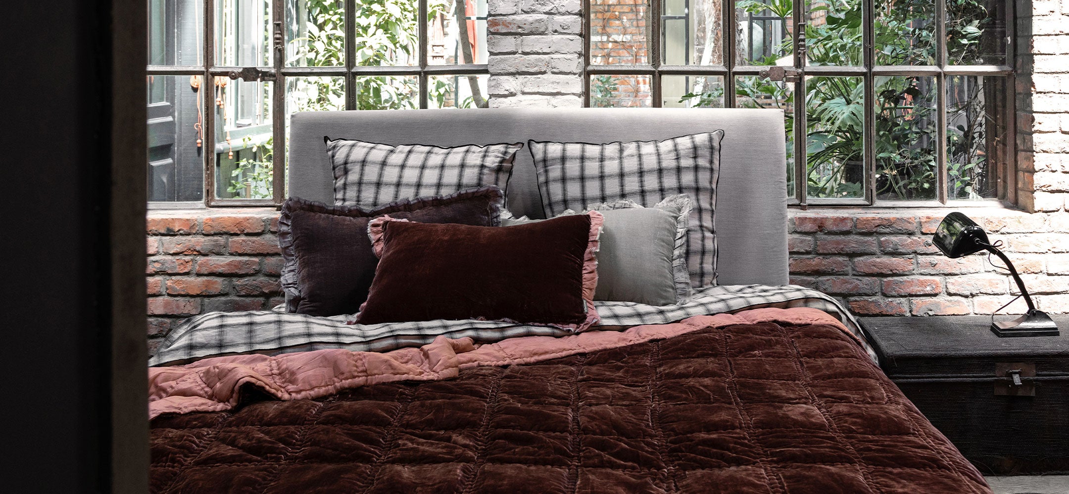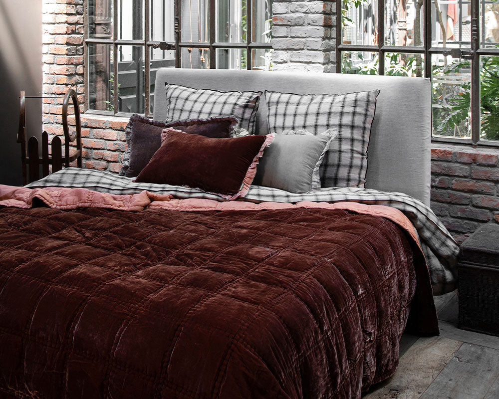 Jouez le total look dans la chambre avec le quilt Goa by night et les petits coussins Sweet pour une ambiance boudoir. Ou cassez les codes sur le canapé avec la collection de coussins japonais.