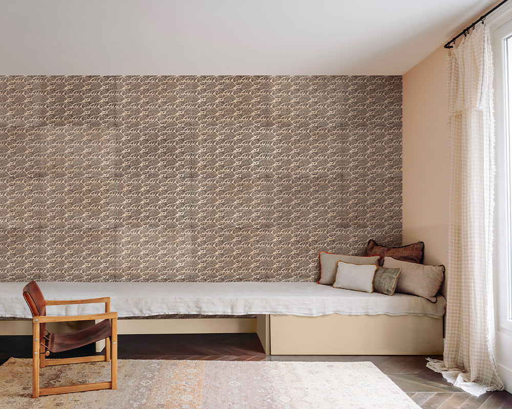Notre papier peint est ultra simple à poser : les feuilles irrégulières se posent les unes à la suite des autres pour créer une composition vivante.