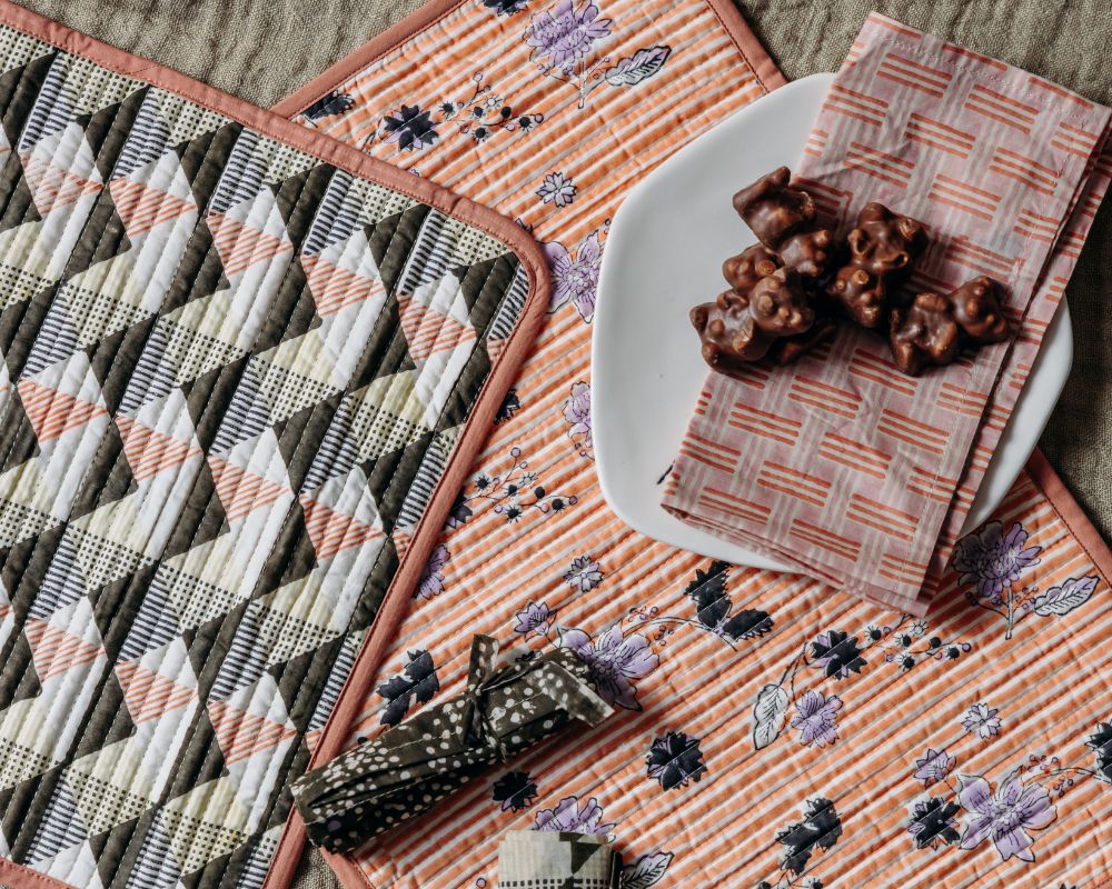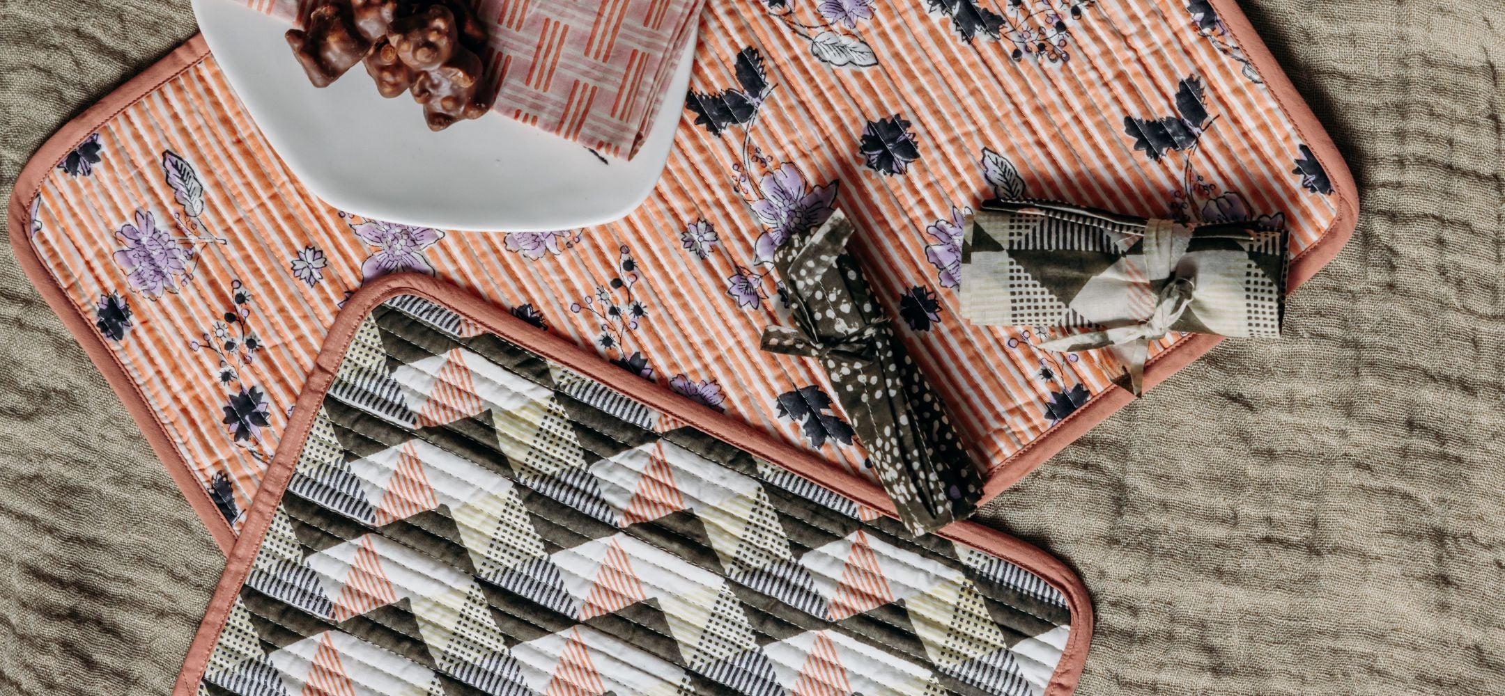 Pratique et décoratif, le set de table Impro est réversible : à chaque côté son motif afin de varier les compositions. Imprimée selon la technique traditionnelle au bloc de bois, cette pièce artisanale en coton est matelassée avec une finition de biais de couleur. En mix & match ou tous identiques, les différents modèles s’accordent avec les serviettes et nappes Impro.